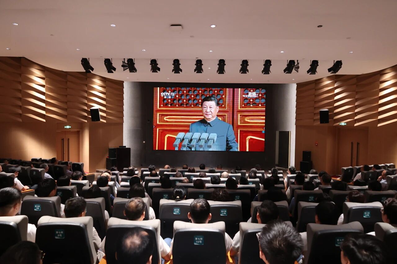 9月3日上午,纪念中国人民抗日战争暨世界反法西斯战争胜利80周年大会在北京天安门广场隆重举行。公司党委高度重视,精心部署,在报告厅、会议室、项目工地等场所设立集中收看点,组织广大党员干部职工收听收看大会直播,认真聆听习近平总书记重要讲话精神,集中观看阅兵现场直播盛况,共同见证这一庄严而神圣的时刻,深刻感悟历史伟力,凝聚奋进力量。